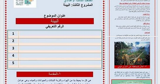 بحث البيئة للصف الثالث الاعدادى شامل عدد الكلمات وتطبيق المواد الدراسية عربى ورياضة وانجليزى وعلوم ودراسات داخل البحث