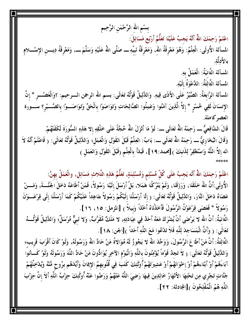 متن ثلاثة الأصول للشيخ محمد ابن عبد الوهاب Mp3 Pdf Doc مدونة العلوم الشرعية
