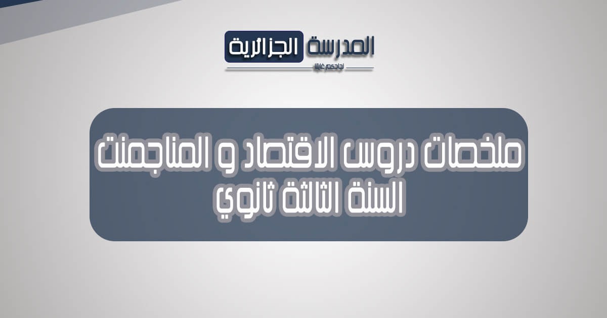 ملخص دروس إقتصاد و المناجمنت 3 ثانوي Pdf