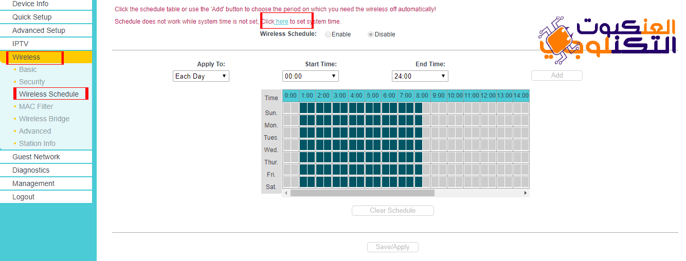 تعيين وقت معين لتشغيل الانترنت بالراوتر طريقة توقيت المودم للاتصال بالإنترنت في وقت محدد صقور الإبدآع